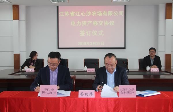 為深入貫徹落實集團公司關(guān)于深化改革發(fā)展工作的相關(guān)精神要求,加快推進農(nóng)場辦社會職能改革工作。3月29日,江心沙農(nóng)場與海門市供電公司資產(chǎn)移交簽約儀式在農(nóng)場舉行。農(nóng)場黨委書記、場長許嘉寧,黨委副書記嚴忠,副場長楊慧,海門市供電公司總經(jīng)理李秋實、副總經(jīng)理陸建鋒,以及雙方相關(guān)單位、部門負責(zé)人出席簽約儀式。