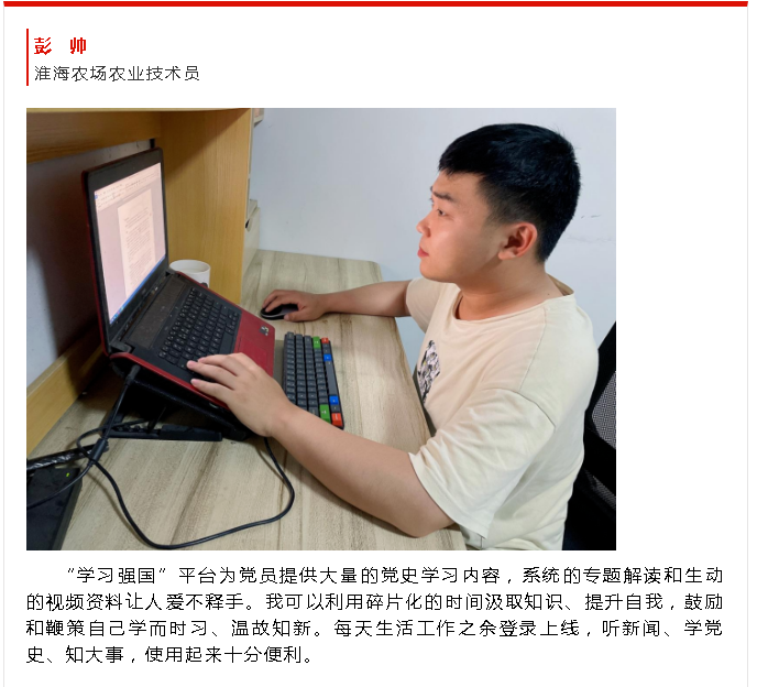 淮海各基層的黨員群眾堅持每天打卡答題,積分你追我趕,大家的學(xué)習(xí)積極性高漲,實現(xiàn)了從“要我學(xué)”變“我要學(xué)”,從“被動學(xué)”變“主動學(xué)”的轉(zhuǎn)變。通過答題活動,進一步加強了常態(tài)化制度化使用“學(xué)習(xí)強國”學(xué)習(xí)平臺,在互學(xué)互比中實現(xiàn)互進互促。圖為彭帥在射陽宣傳第8期上的學(xué)習(xí)感悟。