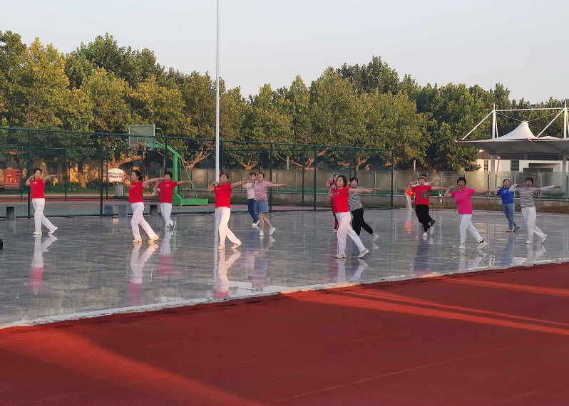 開(kāi)始,這支健身操跳舞的場(chǎng)地是在淮海禮堂前的廣場(chǎng)位置,但考慮到兩邊是居民區(qū),為了不影響晚起居民的休息,她們就將場(chǎng)地移到職工休閑體育運(yùn)動(dòng)廣場(chǎng)上的舞蹈池上,并且重新購(gòu)置了音響,播放健身操的音量也調(diào)至恰好位置。77歲的姚奶奶笑著說(shuō):“有了這支舞蹈隊(duì),我晨煉健身操,晚跳廣場(chǎng)舞,身體康健了,渾身有勁了,生活更有奔頭啦。”