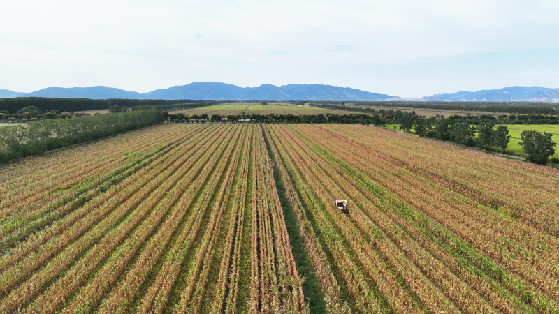 今年江蘇農墾大豆玉米帶狀復合種植面積達12萬畝,目前大豆玉米已經陸續成熟。圖為蘇墾農發東辛分公司農機在田間收割大豆。