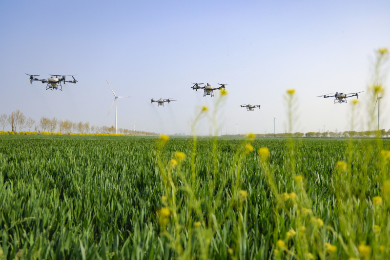 4月10日,射陽縣江蘇農墾新洋農場組織農技人員,對田間小麥開展無人機飛防作業。該農場通過智能化作業做好田間作物管理,助力夏糧豐收。 張偉生 攝