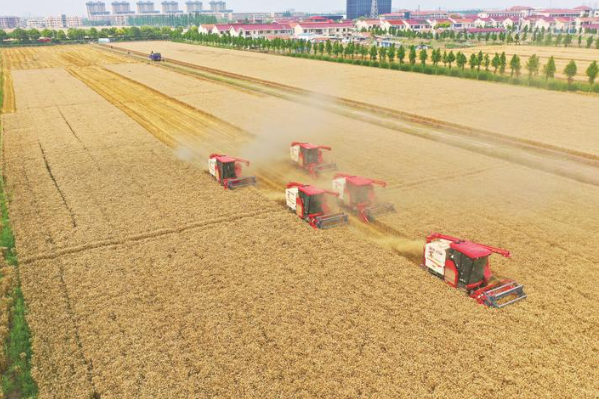 24日,隨著5臺收割機在田間來回穿梭,江心沙農場本部小麥正式開鐮收割,吹響“本部+外拓+全托管”3萬余畝夏糧收割會戰集結號。全力以赴趕進度,在確保顆粒歸倉的同時,為水稻移栽、夏玉米播種等騰出空間、搶出時間,實現高效騰茬和收、種、管無縫銜接。
