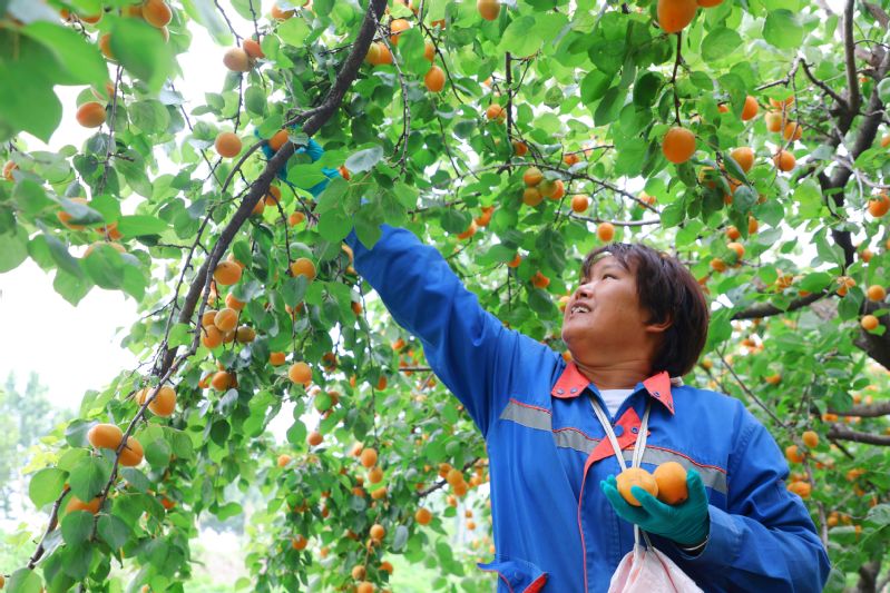 又是一年杏子黃,碩果壓枝正飄香。眼下,江蘇淮安盱眙三河農場的杏林迎來豐收,果香四溢的杏子掛滿枝頭,果農搶抓晴好天氣進行采摘、分揀、裝箱,一派忙碌的豐收景象。 作者:錢厚紅 韓磊
