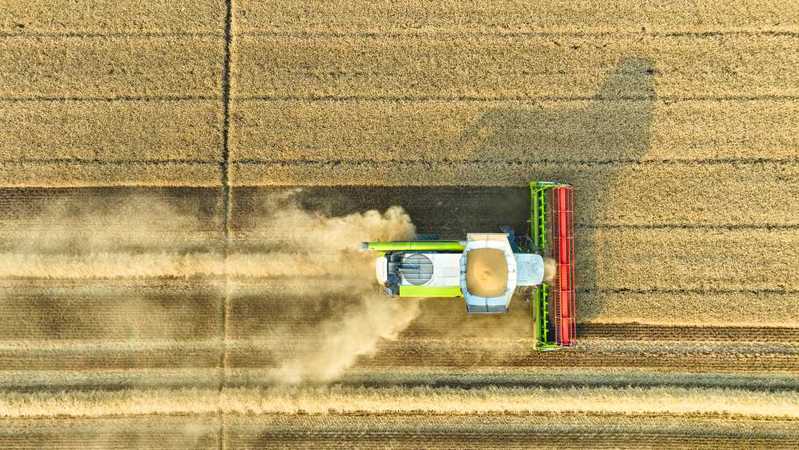 6月4日,江蘇省鹽城市射陽縣,江蘇農(nóng)墾新洋農(nóng)場(chǎng)組織大型聯(lián)合收割機(jī)搶收小麥,確保顆粒歸倉(cāng)。
