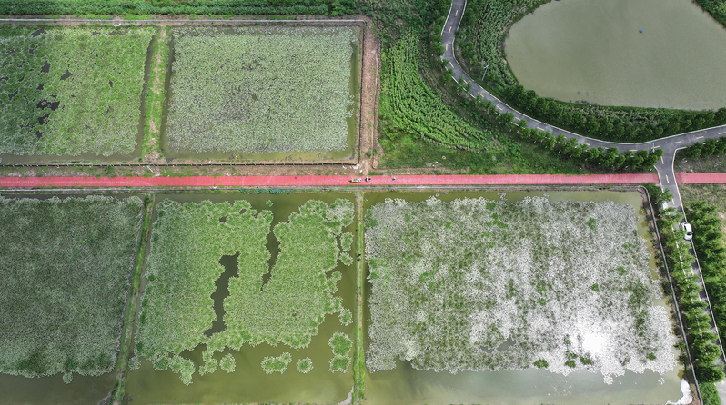 在云臺農(nóng)場云水灣濕地公園,40畝荷塘甲魚、60畝蟹蝦以及80畝魚塘相映成趣,通過“一水多用、種養(yǎng)循環(huán)”的生態(tài)模式,既守護(hù)了濕地生機,更孕育出獨具特色的休閑垂釣新業(yè)態(tài)。