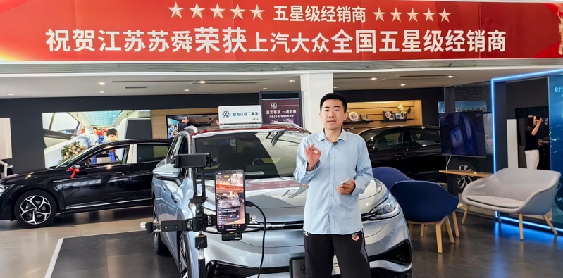蘇舜公司創(chuàng)新“直播+服務(wù)”銷售模式,重點發(fā)力“抖音、小紅書”等平臺,加大直播場次與粉絲互動,將留資轉(zhuǎn)化率提升至12%,平均觀看時長達(dá)到23分鐘。圖為工作人員在直播間提供二手車在線置換評估、金融方案計算等服務(wù)。