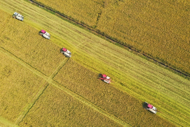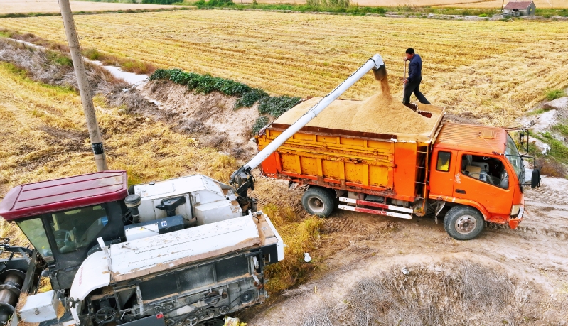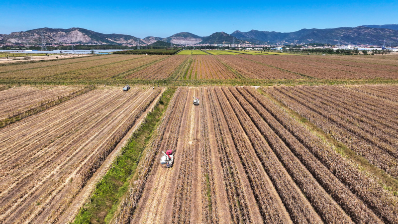 時下,正式秋收好時節,在蘇墾農發云臺分公司廣袤的田野上,豆莢搖曳如鈴,玉米金黃飽滿,伴隨著收割機的轟鳴聲,蘇墾農發云臺分公司1.1萬畝玉米大豆復合種植“喜開鐮”,工作人員搶抓晴好天氣,及時收割、晾曬,開始了緊張而有序的收割工作。蘇墾農發云臺分公司緊盯全年糧食生產目標任務,按照江蘇省農墾集團的“五統一”模式為標準,通過“4+4”復合種植模式,充分發揮高位作物玉米的邊行優勢,擴大低位作物大豆受光空間,實現作物協同共生、一季雙收。為了抓好今年“三秋”工作,蘇墾農發云臺分公司制定了各大隊組織分工、產量目標、成本管控、生產進度、作業質量、田間苗情、病蟲草害控制、場頭管理與糧食入庫銷售、質控平臺運行、農業面源污染治理、藥肥雙減增效、安全生產等12項“三秋”考核內容,并多次開展技術培訓,為抓好“三秋”工作提供組織保證、考核目標和技術標準?!翱礃幼樱衲暧质且粋€豐收年?!币淮箨犼犻L王飛抓起一把玉米說。“開始作業前,我們對所有農機具進行了安全自查,確保收割機狀態良好,在玉米收割過程中我們嚴格按照玉米收獲作業質量管理規程,真正實現玉米籽粒損失率要小于等于百分之二,籽粒破損率要小于等于百分之五的目標任務?!?/div>