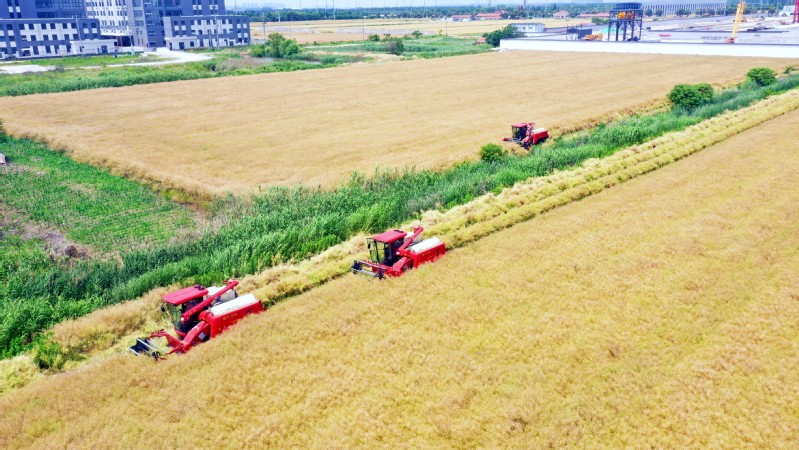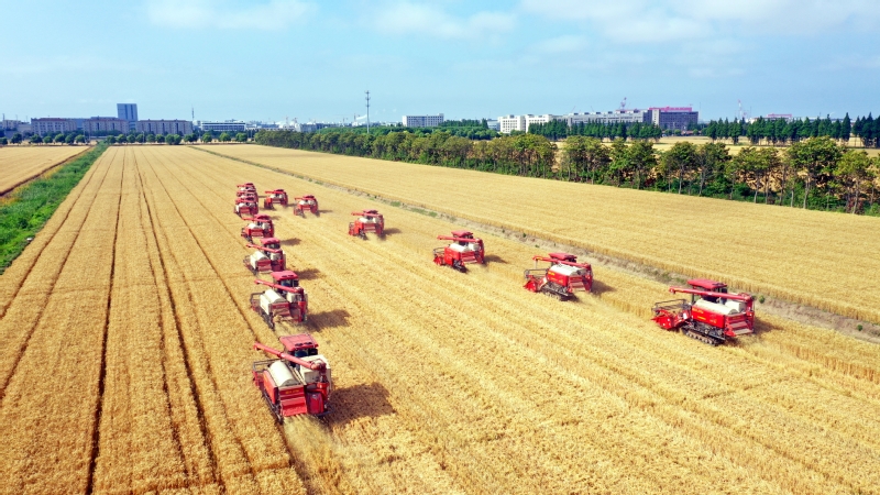 風吹麥田千重浪,麥粒漸滿穗金黃。5月22日中午,4臺約翰迪爾C2400大型聯合收割機開進了蘇墾農發濱淮分公司27大隊大麥田間,迎來了今年夏收“第一鐮”。伴隨著收割機陣陣轟鳴聲,一排排大麥被卷入收割機中,稻穗經過脫粒、碎桿等工序后收入機艙,輸送到運糧車上,并拖向場頭翻曬。半天時間,近300畝大麥收割結束。收割現場,農水中心和大隊管理人員在田間檢查收割質量?!斑@是我們今年‘三夏’的首次收割,我們前期對24臺收割機進行檢修、調試、保養,確保農機以最佳狀態投入到夏收工作中,務必要把收割損失率降到最低?!鞭r水中心副主任孟琪表示?!敖衲炅a區大麥單產有望超去年,按照‘三夏’動員會部署,堅持質量和標準化,搶抓晴好天氣開展收割作業,計劃在28日前完成六生產區的大麥收割工作,充分利用好把大麥的茬口優勢,奠定秋糧豐產基礎?!绷a區主任盧剛說。