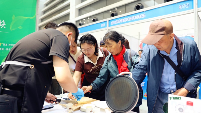在剛剛結(jié)束的2025“蘇新消費(fèi)·夏夜生活”暨連云港第六屆網(wǎng)絡(luò)購(gòu)物節(jié)上,蘇墾漁業(yè)的鮮蝦餅、金沙蝦球、蝦滑等對(duì)蝦系列產(chǎn)品開售兩小時(shí)便被搶購(gòu)一空。圖為顧客現(xiàn)場(chǎng)品嘗對(duì)下系列產(chǎn)品。